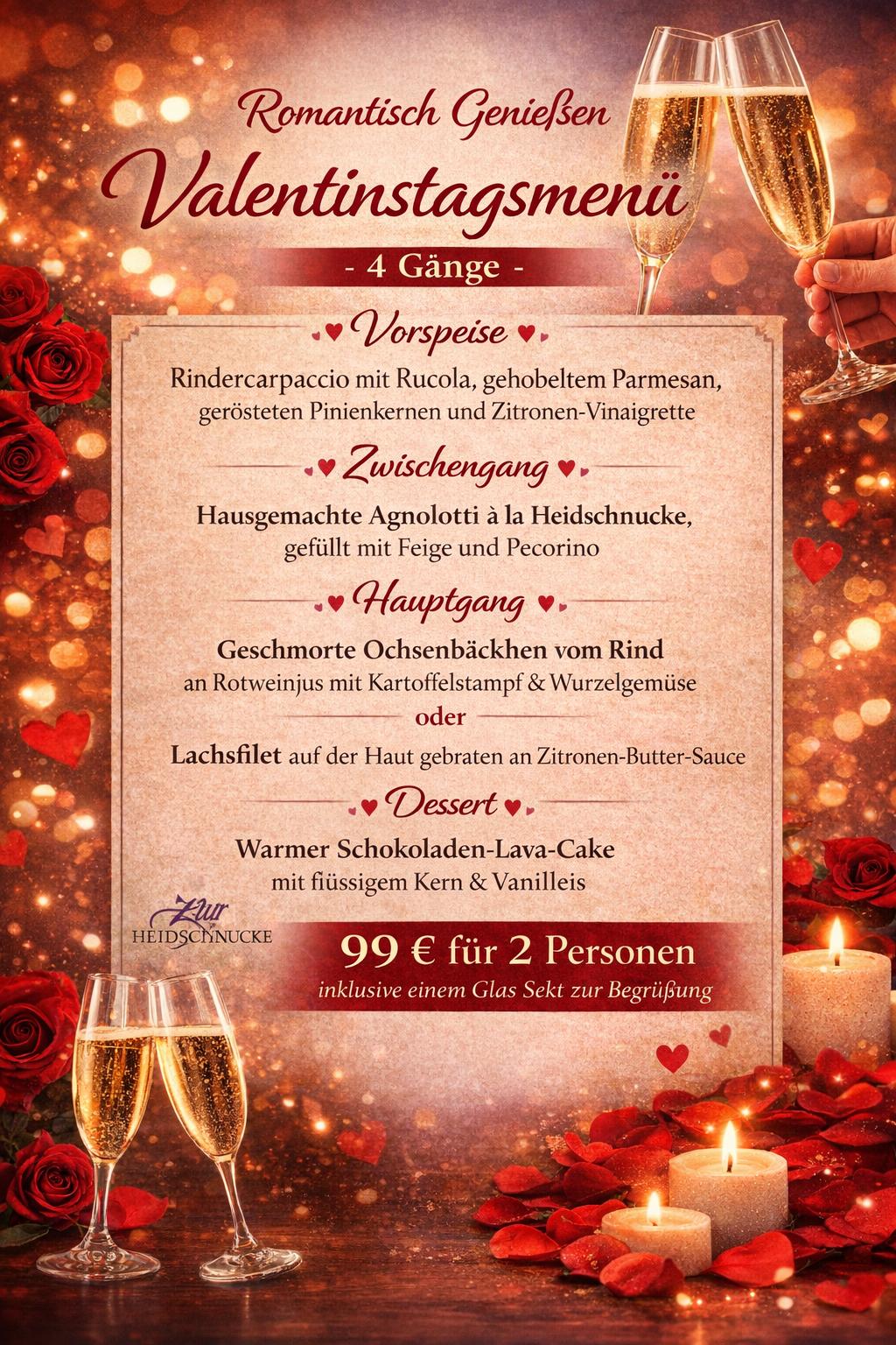 Reserve your table for our 4-course Valentine's Day menu!